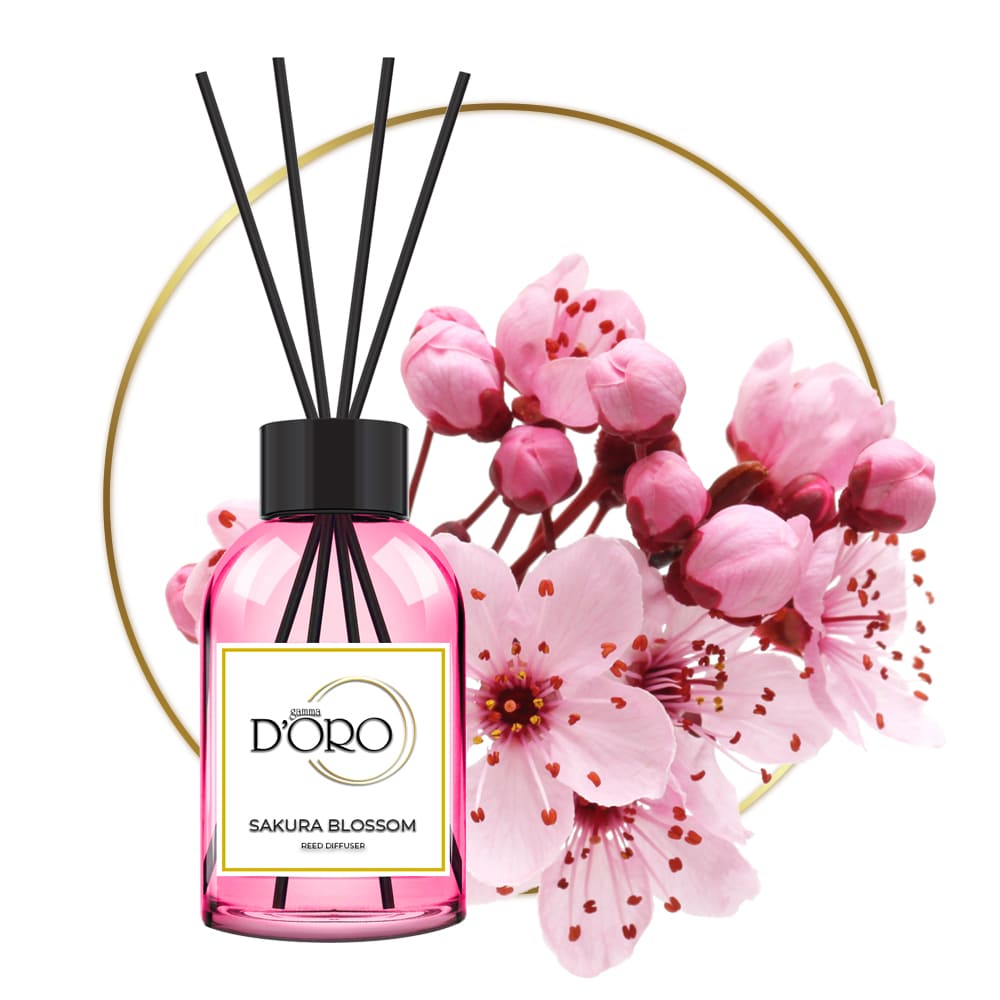 Аромадиффузор цветение сакуры от бренда Gamma D’ORO. Нежный сладковатый аромат цветка японской вишни на фоне весенней свежести. Лёгкая, изысканная композиция для создания хорошего настроения и расслабляющей атмосферы.