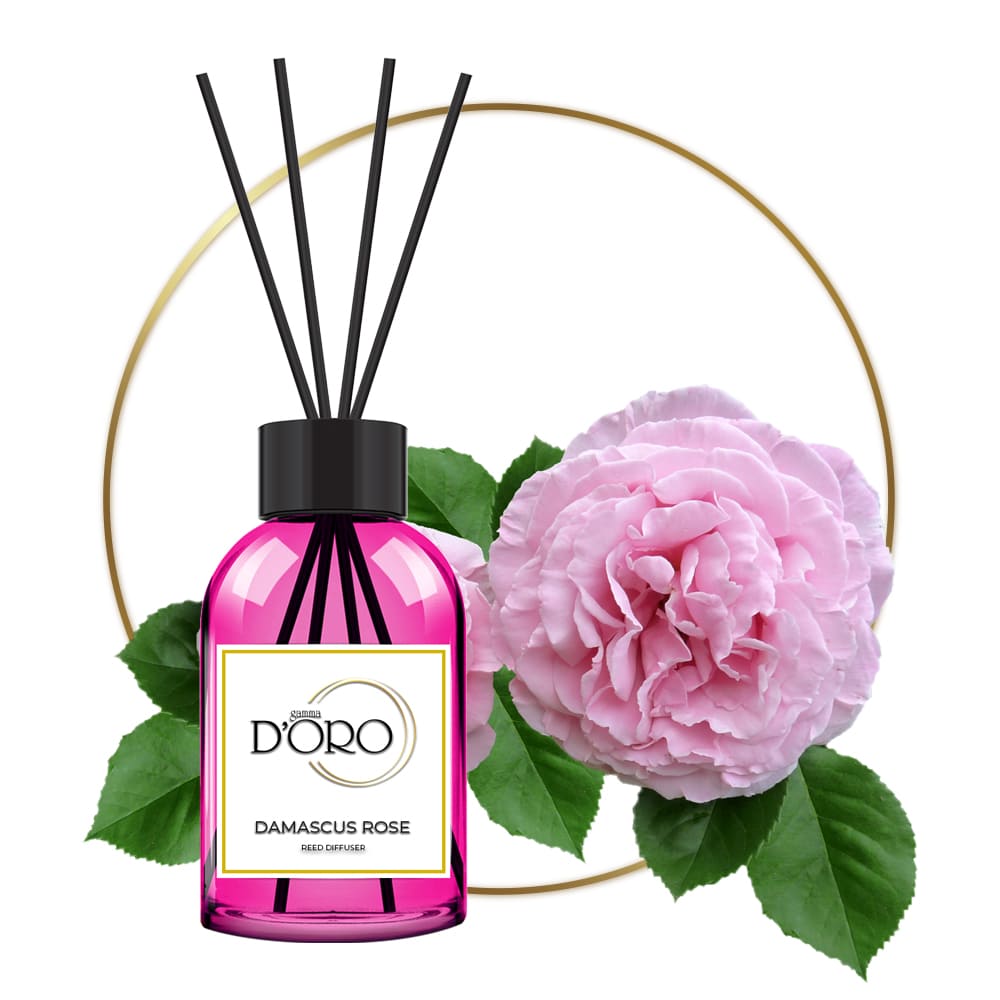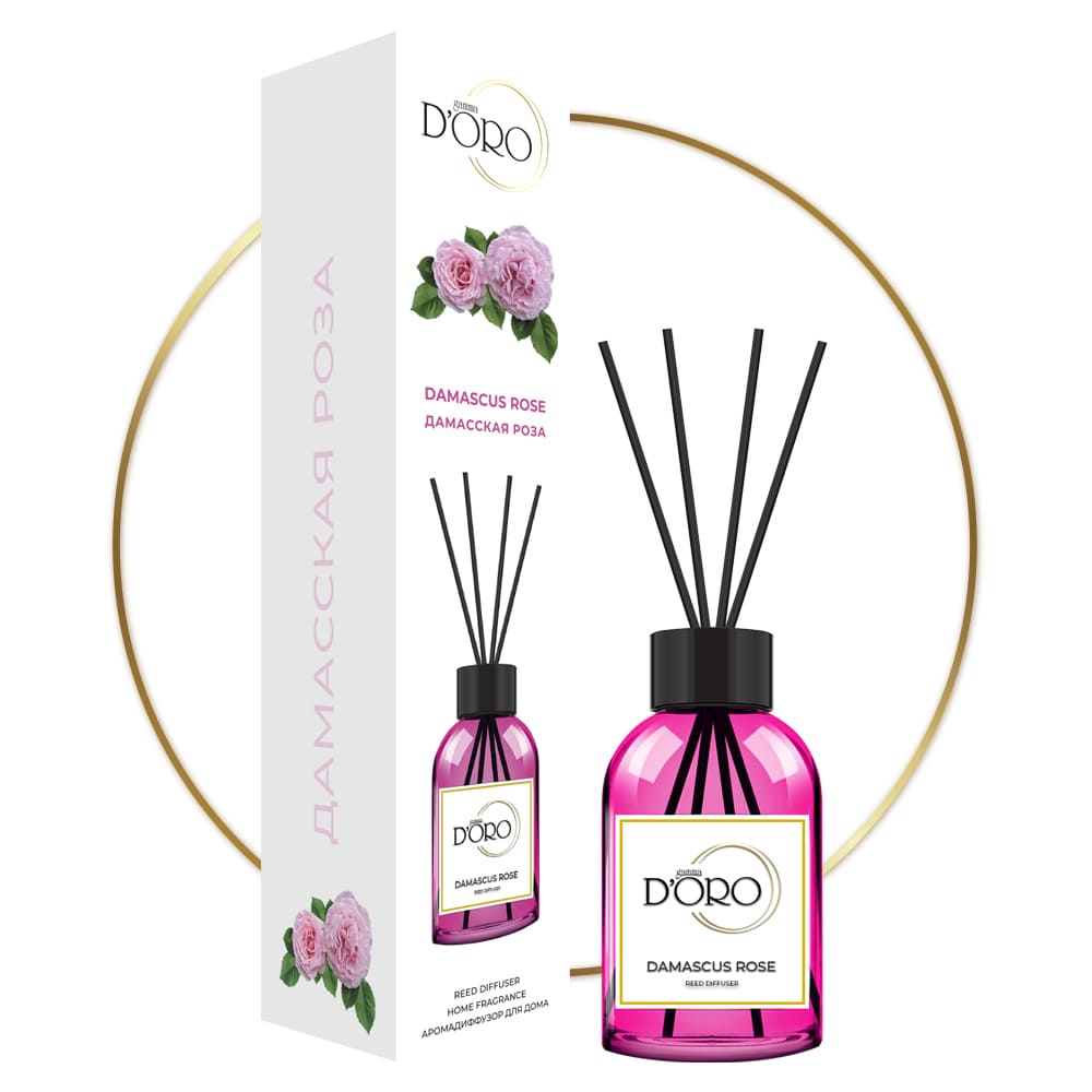 Аромадиффузор дамасская роза от бренда Gamma D’ORO. Узнаваемый душистый запах самого популярного цветка в парфюмерии - дамасской розы. Он сочетает в себе медовые, карамельные, дымные и даже табачные оттенки. Композиция подарит тонкий и свежий аромат вашему дому.