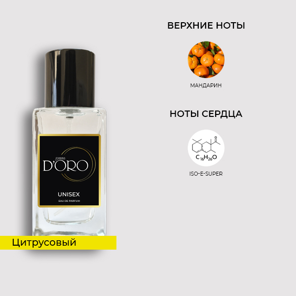 Парфюм начинается с ярких и сочных цитрусовых нот мандарина, которые мгновенно освежают и заряжают энергией. В сердце аромата раскрывается древесными аккордами молекула Iso E Super , создавая длительное, невесомое звучание. Базовые ноты продолжают идею легкости и чистоты, оставляя мягкий и притягательный шлейф. Подходит для ежедневного использования и универсален как для мужчин, так и для женщин.