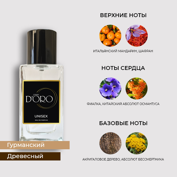 Верхние ноты: Итальянский мандарин, шафран.