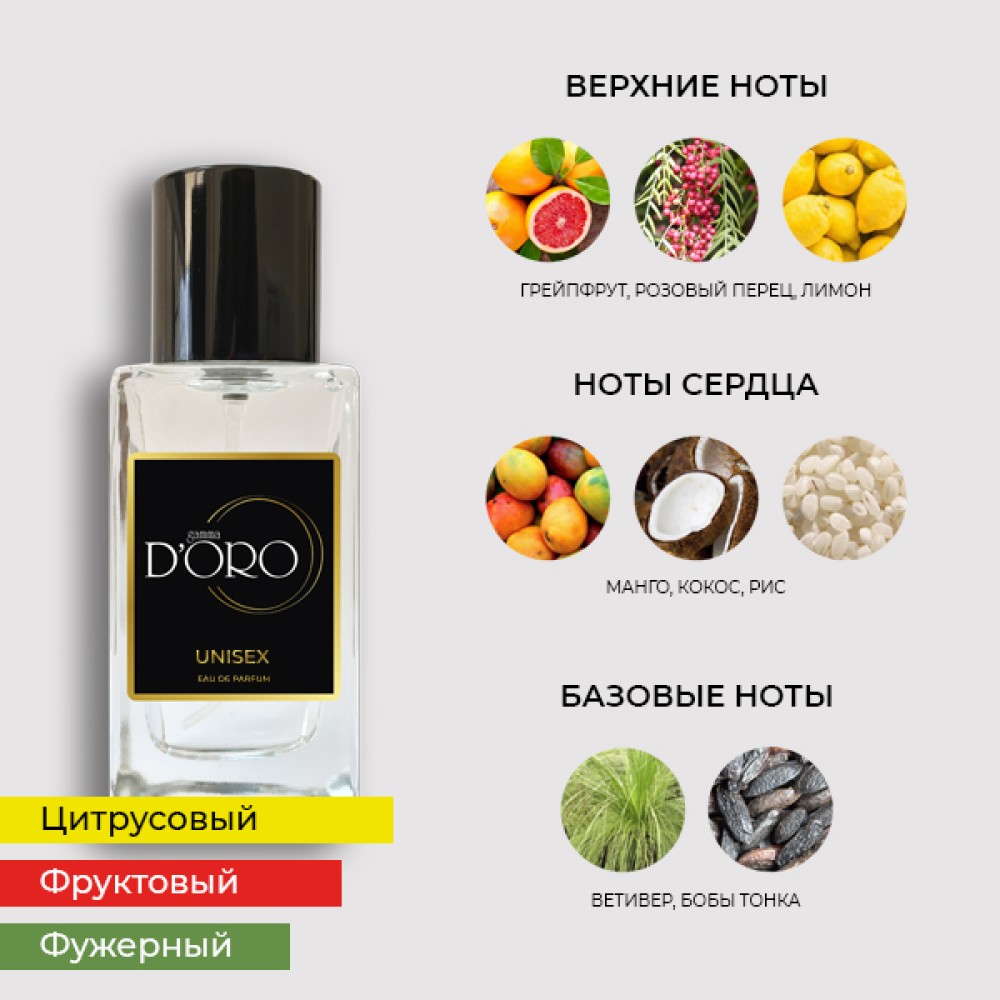 Верхние ноты: Грейпфрут, лимон, розовый перец.