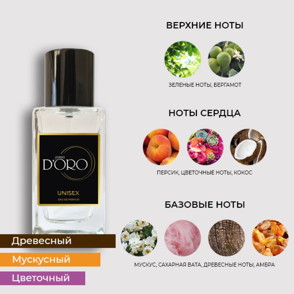Базовые ноты ванили, мускуса и амбры делают композицию стойкой и глубокой. Ваниль придает аромату сладковатый, нежный шлейф, мускус добавляет чувственности, а амбра — сложность и многогранность.