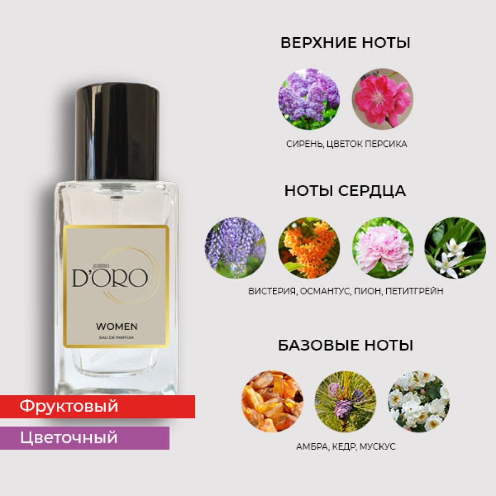 цветок персика, сирень, вистерия, османтус, пион, петитгрейн, чайный лист, амбра, кедр, мускус
