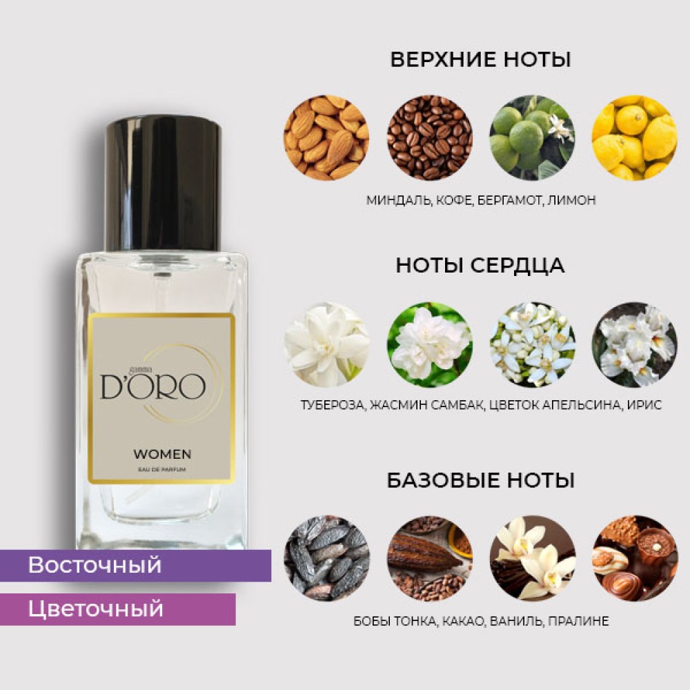 Парфюм создан на основе высококачественных ингредиентов, которые подчеркивают его уникальность и стойкость. Верхние ноты аромата включают кофе и цитрусовые, добавляя свежесть и светлую нотку. В сердце аромата раскрываются ноты жасмина, туберозы и цветок апельсина, придавая ему нежность и элегантность. Базовые ноты, такие как пачули, бобы тонка и какао, создают глубину и долговечность парфюма.